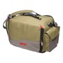 Rapala Horizontal Jig Bag accommodates six 3700 sized tackle boxes held horizontally so jigs and jig heads stay in order. Two 3700 sized tackle boxes included. Big front opening flaps with see through plastic pockets inside. Built in magnetic snaps keep front flap on top of the bag when opened. Smaller mesh pockets inside the backside pocket. Main compartment lined with waterproof lining. Right hand side work station with several pockets. Waterproof thermoformed EVA bottom with Rapala logo.