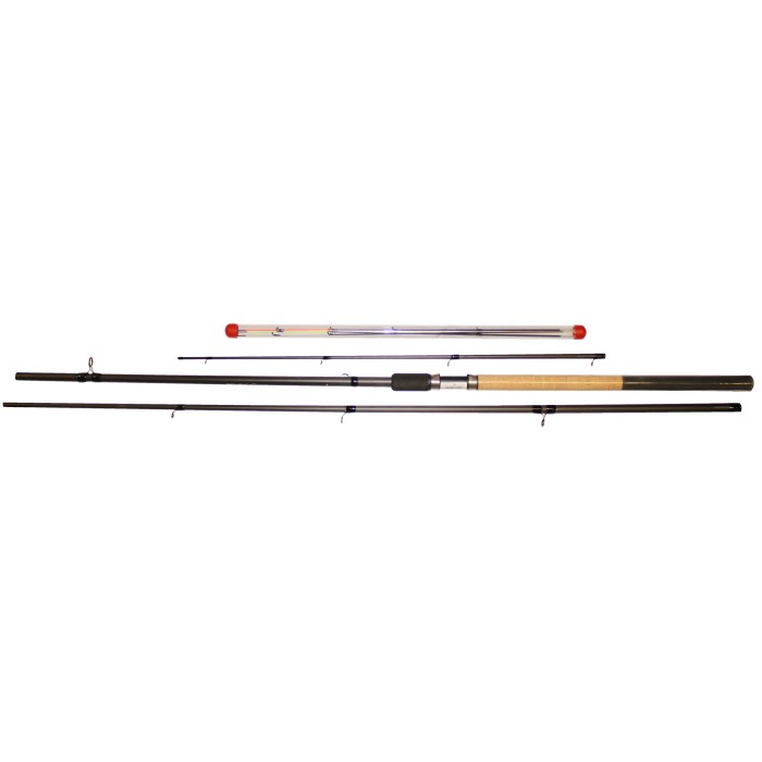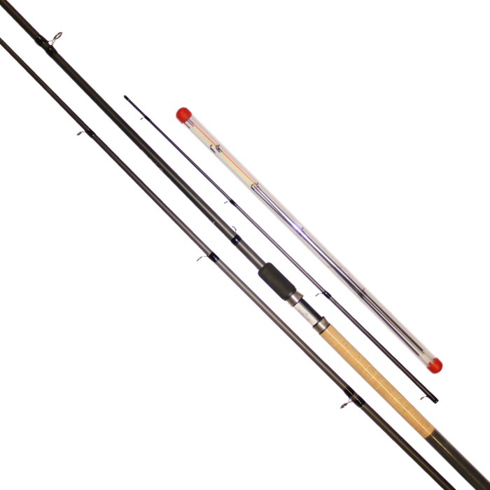 This will cast medium sized feeders, straight lead & even filled PVA bags a good distance. The 3 push in tips make it a good all round rod for fishing commercial waters for Carp & also rivers for Barbel, Chub & even silverfish.