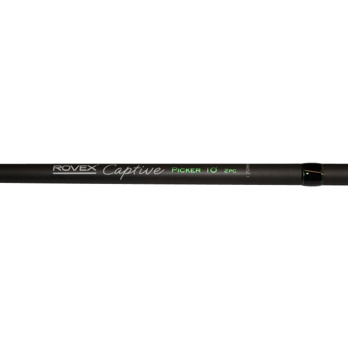 Available in both 9ft & 10ft Rovex Captive Carp Picker rods are perfect for fishing small to medium sized feeders as well as straight lead. They have a forgiving tip to protect the lighter hook lengths & also to be able to spot the most delicate bites. The sensitive tip is ideal for catching silverfish but backed up with a powerful butt section it is also perfect for handling good sized Carp in the commercial waters. The shorter length is ideal when fishing tight swims & also tucking in close to the bank in windy conditions. Two equal sections allow the rod to be made up and carried to the waters edge in a rod sleeve. With a slim, lightweight Carbon Blank, EVA handle & well spaced lined rings, this rod is a must for even the most discerning angler despite the moderate price.