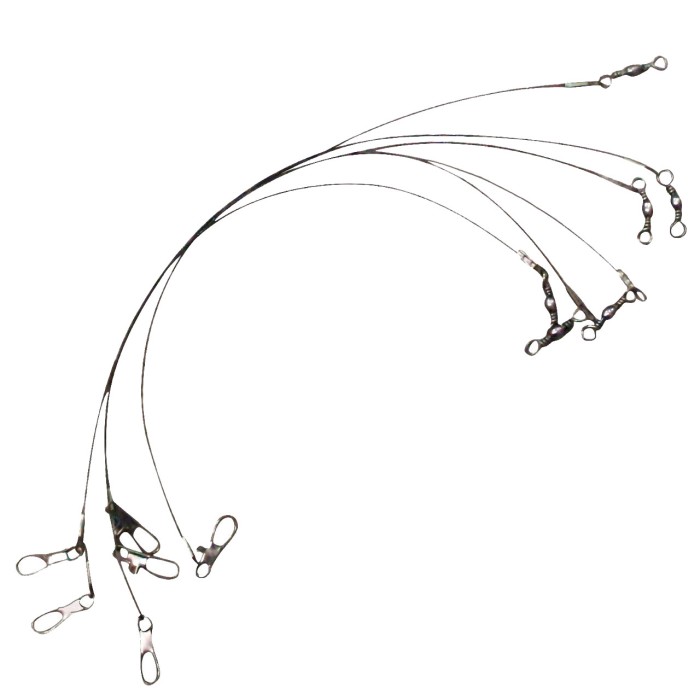 Nylon coated wire traces. Perfect for pike and perch fishing. Fitted with snap fastening one end and ball bearing snap the other.