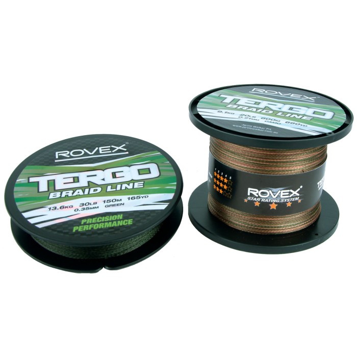 Rovex Tergo Braid is an affordable multi-purpose Dyneema blended braid suitable for various fishing styles. It's made using a special fibre-twisting process for better sensitivity and is also strong. Rovex Tergo braid is green in colour and available in 150m or 250m spools.