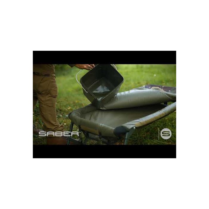 Made from fish friendly, durable, waterproof PVC, and finished in Saber's striking DPM (Disruptive Pattern Material), this fully padded carp crib has adjustable legs, making it easy to set up on any bankside, and ensuring complete stability, together with folding mud feet, which will hold your cradle, and your carp, securely in place on wet banksides.