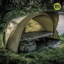 The Saber Supra LITE is built using a 2 rib frame system making a light weight and easy to erect bivvy. A zip off infill panel also gives you the option to be used as a shelter and peak is integrated giving more shelter from the elements.