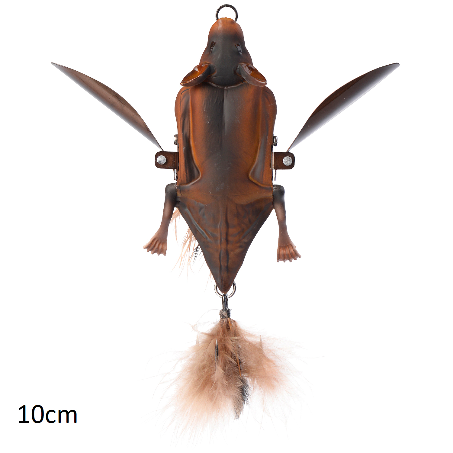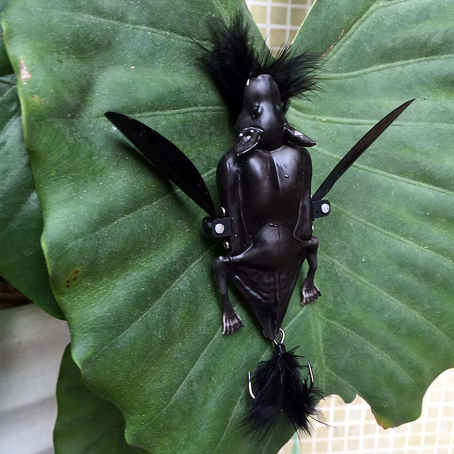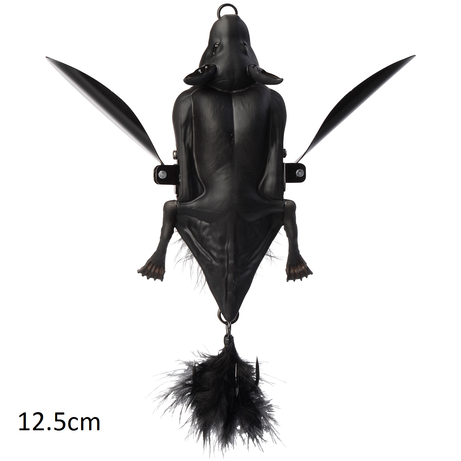 The wings of the larger bat are made from stainless steel and the wings of the smaller two sizes from aluminium, while the body of all three models is constructed from hard acrylonitrile butadiene styrene (ABS) to ensure they aren’t damaged when predators attack. The wings give the bat a side-to-side crawling action that perfectly mimics a bat, small bird or any other small terrestrial animal that has accidentally fallen into the water, triggering reaction strikes, while its frantic, noisy action and built-in high-pitched rattle attracts predators from distance.