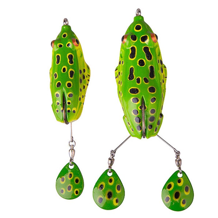 A perfect frog imitation based on a 3D scan of real frog. Hollow collapsible body, with hidden wide gape 4X single hook for perfect hook-up up rate even on Pike. The Spinner will bubble and flash with superb attraction calling in the predator fish for brutal top water attacks!