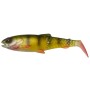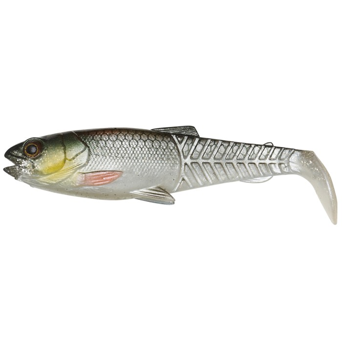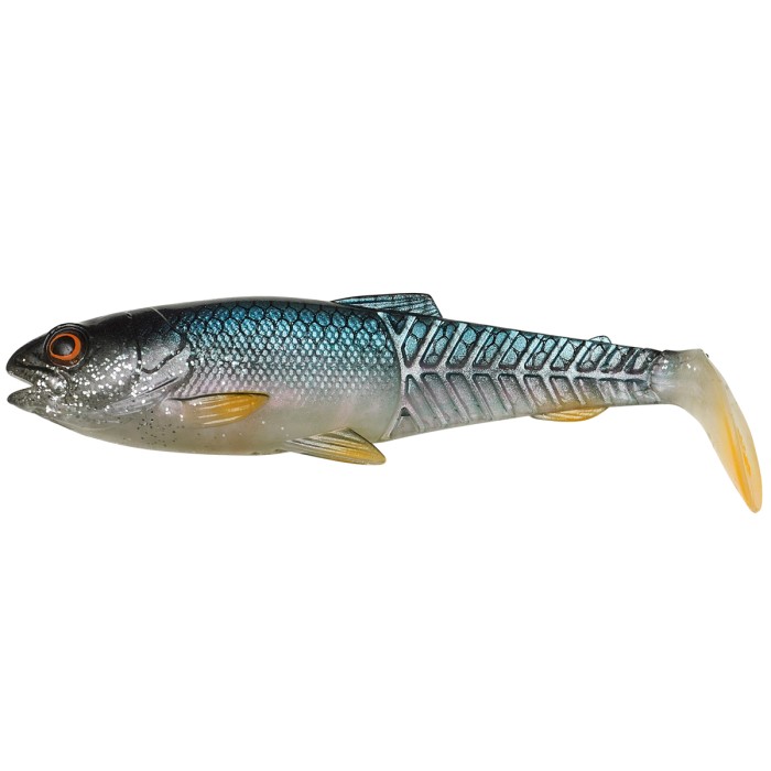 Crafted and designed by legendary designer Mads Grosell. The lure profile is inspired by a baby trout smolt, with the classic Cannibal open mouth, a realistic big soft eye and a new unique tail bridge design, that enables the lure to swim amazingly life-like even at very slow speed. The lure swims equally well on retrieve and as on the drop and the tooling making and handcrafted details and painting set new standards for soft lure making! This paddle tail loose body lure will catch just about any predator fish out there!