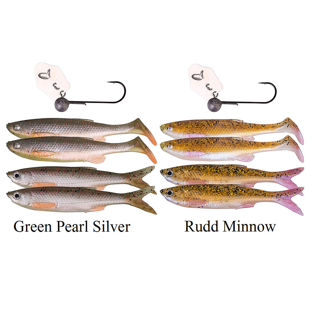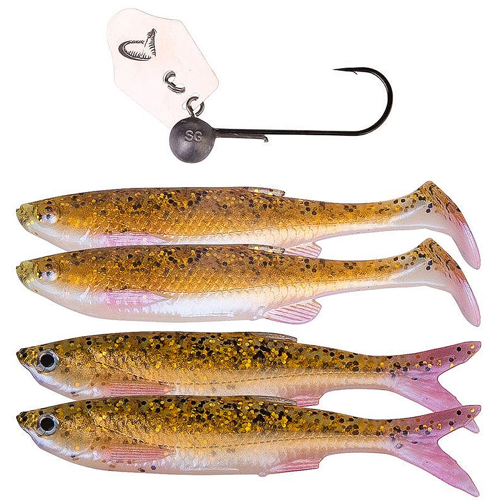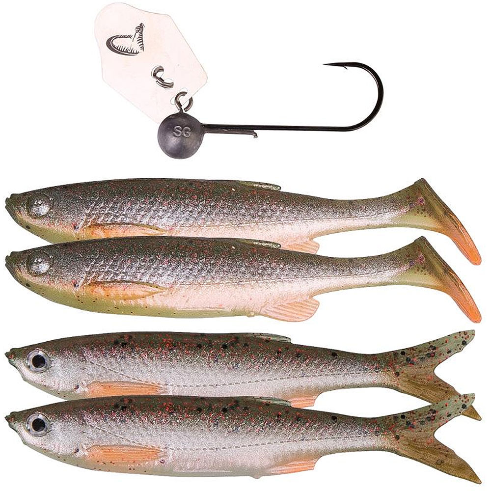 This Savage Gear Crazy Blade Bleak Kit has been designed with pike, perch, zander, bass, and trout in mind and it has proved highly effective in field tests for these species. Each kit comes with a mix of four lures and one crazy blade jighead. It is available in two sizes and with two different lure mixes. The first of the two lure mixes is a green pearl silver colour. These come in two different finishes – of which you get a mix in the pack. The first finish is incredibly lifelike, with a tail and fins which accentuate the crazy jig movement. The second of these has the look of a deadbait, fooling the fish into thinking that they are getting an easy meal.