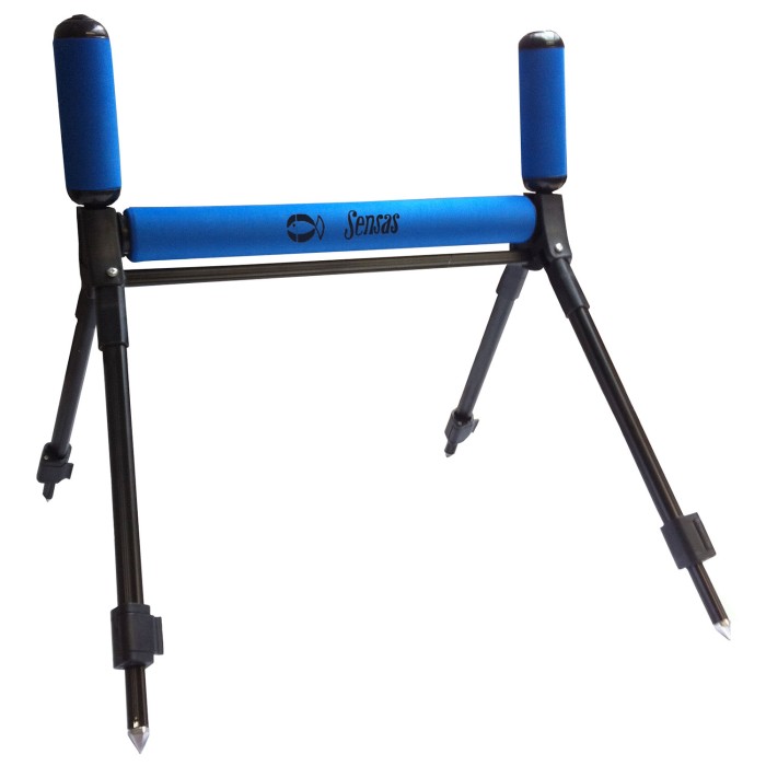 Compact, freestanding pole roller from Sensas with four extendible legs and pointed feet.