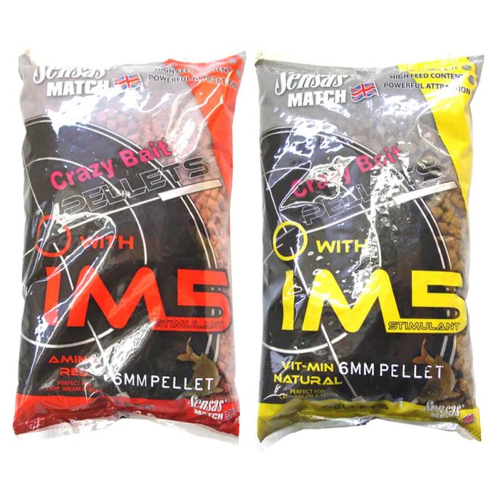 Sensas IM5 Pellets, The IM5 Pellets are fast-acting and quickly attract Carp in the area and encourage feeding. These quick acting pellets swiftly release their stimulants attracting fish into your peg. IM5 range has been developed using the very latest fish attractants prepared specially for Crazy Baits. Developed extensively on carp venues in the East and South of England, the attractants have been field tested rigorously over several years and have truly proved their worth. Combining high nutritional content with easy digestion, IM5 baits hold fish for longer in your swim without filling them up. The attractants help to stimulate carp and other coarse fish into feeding and help holding them in your swim longer.
