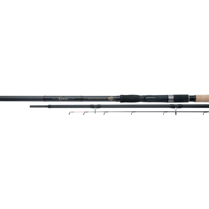 The Catana Feeder is built using a high performance XT40 carbon + Geofibre blank. This improves power and compression when casting, yet retains the sensitivity to handle big fish safely when using light lines and small hooks.