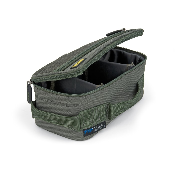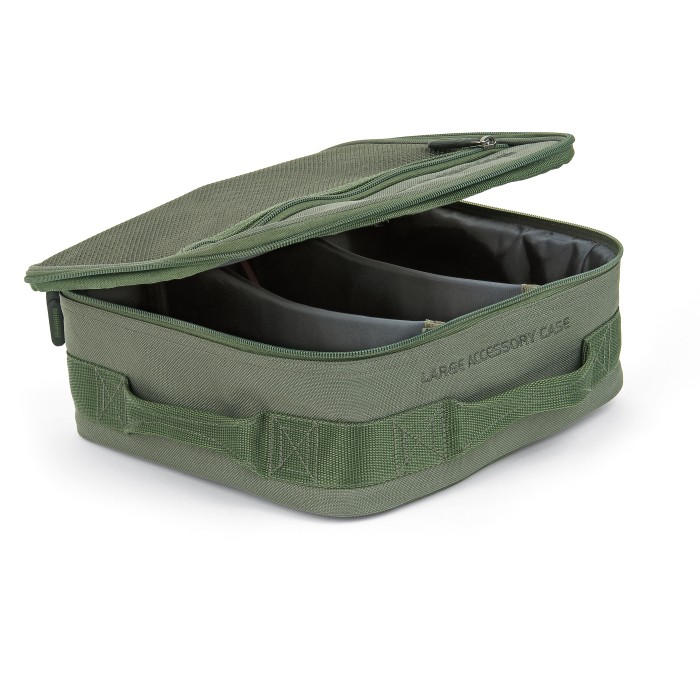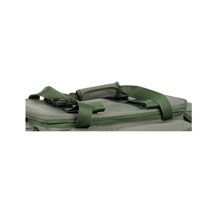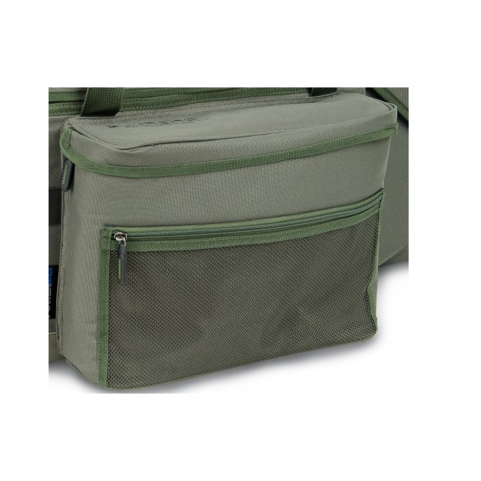 Almost like a tackle box system rather than simply a carryall, the Olive Compact Carryall has a spacious main pocket which can accommodate the Olive Accessory Cases in a number of different configurations. For example, with the accessory cases supplied with the carryall you would be able to fit four of the small cases and both of the large cases into the main pocket of the carryall (as well as being able to accommodate the remaining two small cases into the generous side pockets of the bag). You could also pack all six small cases into the main compartment with just one of the large boxes. By purchasing more of either of the accessory cases you could pack out the main compartment with eight small or four large cases.