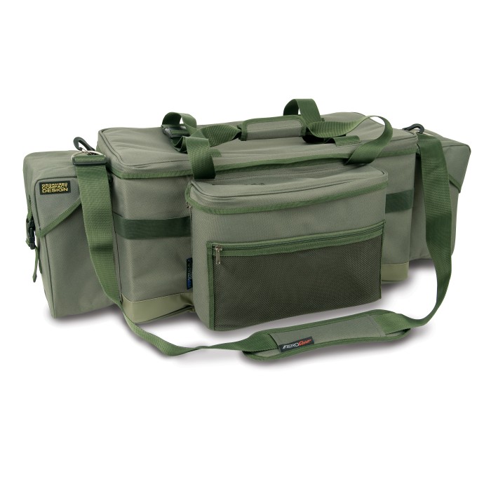 The Deluxe Carryall has been manufactured to the exacting standards that you have grown to expect and demand from Shimano. With power stitch on all of the seams of the bag it is incredibly durable and has been built to last. Webbing handles, with a Velcro wrap around hand cushion, make transporting this bag in and out of your vehicle simple, and the fully adjustable padded shoulder strap allows for hands free transportation down to the bank.