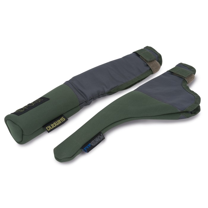 These Tip and Butt Protectors are oversized in order to fit over rods with bigger blank diameters and larger guide sizes. This makes them ideal for use with carp rods, as well as with pike rods, as they can comfortably accommodate rods with 50mm butt guides. Thanks to the Velcro adjustable strap on the protectors you are also able to use these with smaller rods too and you can ensure you get as snug or loose fit as you require. These Tip and Butt Protectors are manufactured from neoprene to ensure full protection and, like all Shimano luggage products, they have been manufactured using power stitching throughout. This ensures that these Tip and Butt Protectors are incredibly durable and can withstand prolonged abrasion.