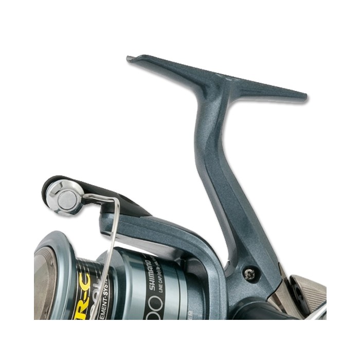 Floating Shaft II: The key friction area on most fixed spool reels is where the spool drive shaft meets the pinion. Shimano designers have overcome this by reducing a large percentage of surface area contact, and incorporating bearings on either side of the shaft. The resultant design leaves the shaft in a "floating" position, considerably improving efficiency and longevity