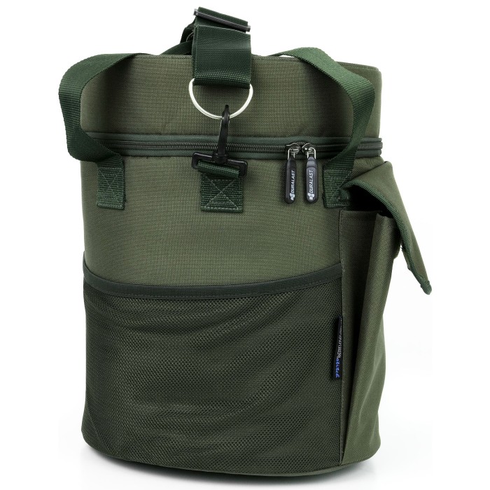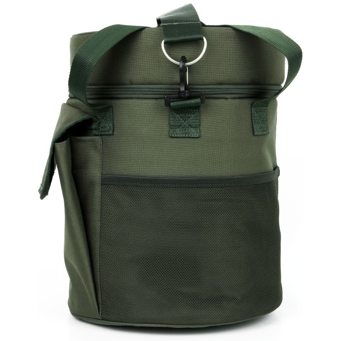 Duralast zippers. Thermal lining. 2x elasticated mesh. 2x large Velcro front pockets. Water resistant heavy foam seat padding. Fits a 10ltr bucket internally (not supplied). Made from 600D Polyester. Dimensions: 30cm x 39cm.