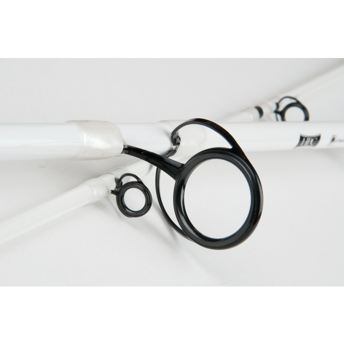 Both rods boast an HPC100 carbon blank. HPC refers to the curing process that the blank undertook and stands for High Pressure Carbon. This means that during the heating and curing process, the blank was exposed to extreme pressure. This stops the integral resin from finding its way to the surface of the blank and instead ensures an even distribution of the resin throughout the blank. By forcing even resin distribution in this way, an HPC blank is up to 40% stronger and more durable than blanks made using traditional methods. The number after HPC (in this case 100) refers to the quantity of carbon used, with the higher the number the greater the quantity. In this instance, the HPC100 blank has also been mixed with Biofibre. This is a natural reinforcement technology which ensures the blank is as strong as possible without sacrificing the slimness of the blank. Fuji grips, alconite guides, and EVA grips finish this stunning white rod perfectly.