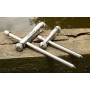 The Bankstick Stabilizer completely eliminates twist, ensuring a solid setup even in loose gravel. Thread your bankstick through the cross bar, push your bankstick into the ground and tighten the thumb screw to secrue the cross bar to the bankstick just above the ground.