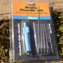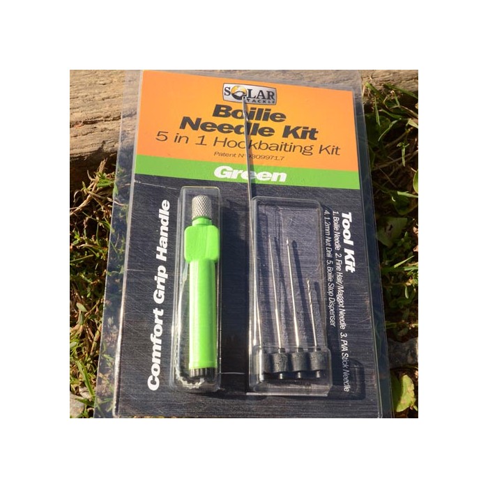 Available in 2 colours Supplied with 4 needles This 5-in-1 baiting tool, is the only baiting tool you will ever need. Supplied with four needles, a boilie needle, a fine, maggot needle, a PVA stick/stringer needle and a fine, nut drill, each can be eaisly and securely attached to the easy-grip handle in a matter of seconds, giving you the perfect baiting tool for any situation. The back of the handle features a boilie-stop dispencer, so they are always to hand when needed, which can be easily refilled with boilie stops as needed. The four needles are spplied in a soft, rubber holder to keep them together in your and the handle is available in four, hi-viz colours and one glow-in-the-dark option, so that you never lose it.
