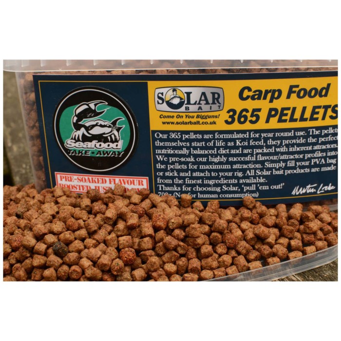 The carp catching ability of fishmeal baits is unquestionable, and the Seafood Take-Away takes this one step further. The flavour profile of this bait is a potent mixture of the finest Scottish salmon meal with crustacean and pre-digested fish meals, seafood extracts, concentrates, flavours, enhancers and appetite stimulators and the result is something very special indeed. Unlike high-oil pellets, the 365s have been designed to work 365 days of the year.