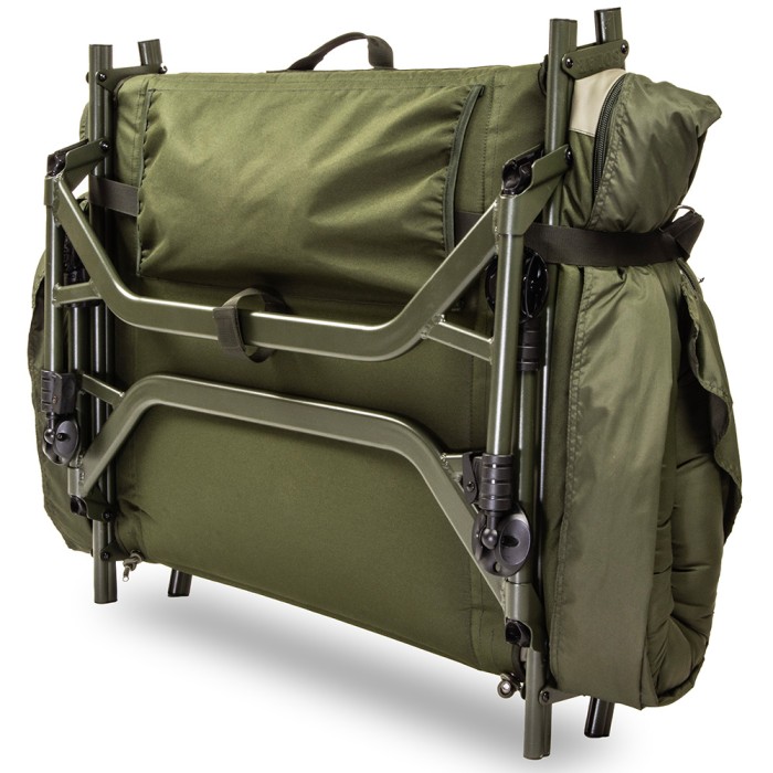 Another great addition to this Solar Sleep System is the spring-loc leg system which makes levelling your Solar sleep system is as easy as pushing a button and allows you to sleep comfortably no matter the bankside terrain. Also, the legs of this Solar sleep system are oval and oversized for maximum strength and durability. Solar have put a lot of thought into taking the stress out of the pack away of these systems with the compression straps separate to the locking of the legs. You can therefore compact the bed down while the legs are still open inside a bivvy and the mattress off the floor. The only problem now is dragging yourself out of this Solar sleep system when you hear that one toner. There is a also a Flat-Pac Hinge System which allows this Solar sleep system to pack as compact as possible and a carry handle for easy transport to and from the bank. Finished in the trademark Solar Green, the Solar SP 3D Dura-Dore Sleep System is the ultimate in bankside comfort and is a must have addition to any anglers carp fishing tackle who regularly goes night fishing.
