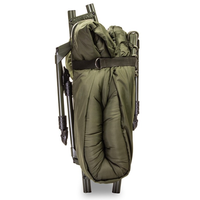 The SP bed is a premium sleep system that incorporates many of Solar’s leading features but with an emphasis on reduced weight. In essence it’s the next generation of our market-leading sleep system, with reduced weight, reduced price, but feature packed. The unique 3D Dura-Dore mattress compromises of 1000’s of tiny, coiled mesh springs that create an air pocket between you and the bed delivering exceptional comfort and air circulation, this frame pinned mattress is built on our oversized high-tensile aluminum frame and boats our Spring-Loc leg system. A 2-layer, 5-season duvet system means that this bed is comfortable in all conditions, from -10 to hot summer days, with a Peach Skin outer material. Compatible with our lightweight SolarCam shroud (sold separately). Thought has gone into taking the stress out of the pack away of these systems with the compression straps separate to the locking of the legs. You can therefore compact the bed down while the legs are still open inside a bivvy and the mattress off the floor. The only problem now is dragging yourself out of this sleep system when you hear that one toner.