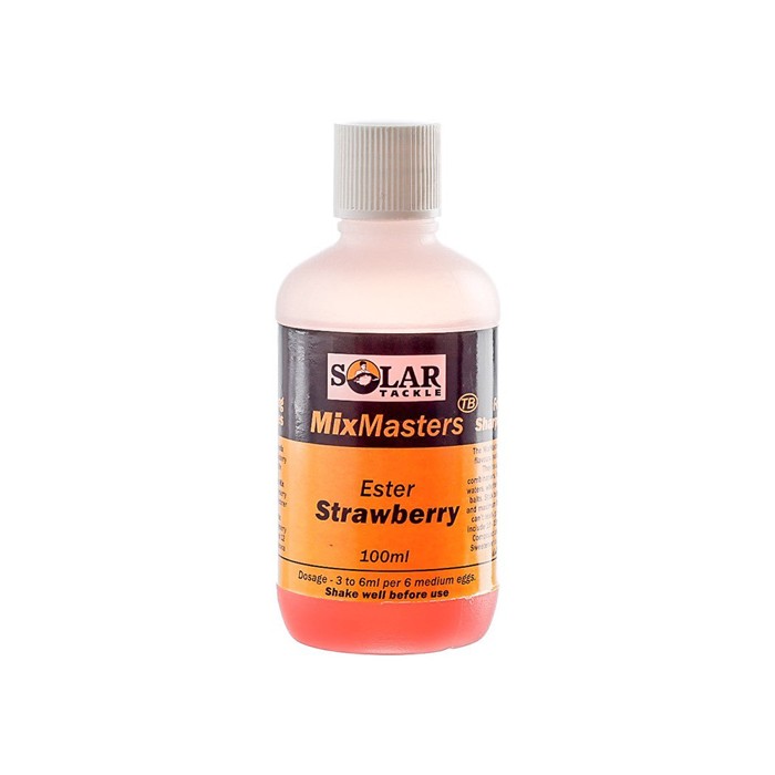 Solar Mixmasters Additives, This ester-based, concentrated flavour is the perfect addition to any fruity or pop-up recipe. Being an ester it works in all water temperatures and is not denatured by the boiling process of the baits. Ester Strawberry is one of the ingredients of our Jacko pop-ups, where it's been producing take after take for years.