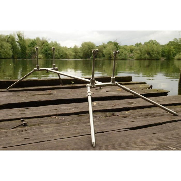 Not only are the legs fully adjustable but the centre bar has an adjustable length and the angle at which the buzz bars are fitted to the pod can also be adjusted. Buzz bars are attached in a ‘goal-post’ setup, ensuring that the entire unit is completely stable once totally erected. Please note that buzz bars not included in this rod pod, but can instead be purchased separately.