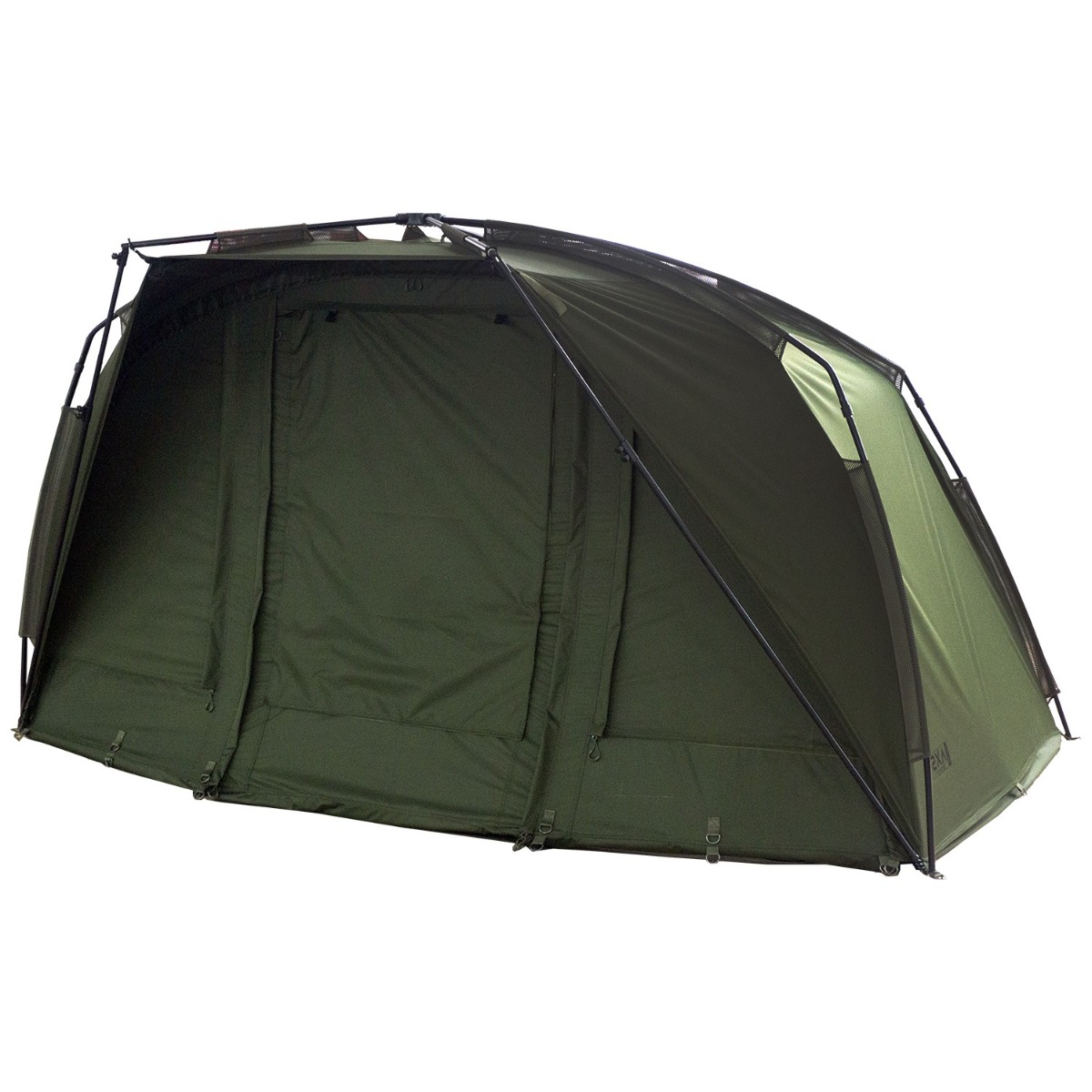 The integral peak with rain drip guard offers even more protection and is a perfect size to cover your levelbed and kit from the elements. The bivvy also features a zip on/off front panel complete with mozzy side windows and fully customisable front door system. Front and rear mozzy vents with internal pockets and green/clear front door window options. Weighing in at only 9.2kg the AXS Bivvy also comes supplied with two 48 quick connect storm poles, Heavy duty clip in groundsheet, four vent spacer bars, an oversized compression style bag and heavy duty T-pegs.
