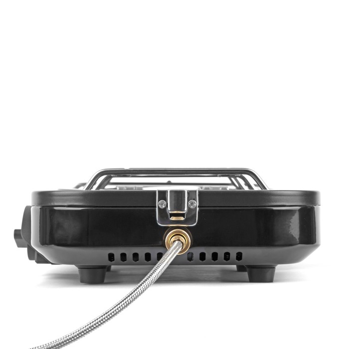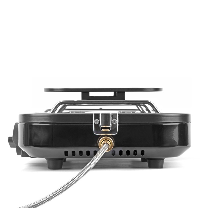 Supplied with a cooking griddle, its great for warming food or toasting, while anti-slip rubber feet and a convenient carry handle make it stable and easy to transport. Compact, efficient, and ready for action.