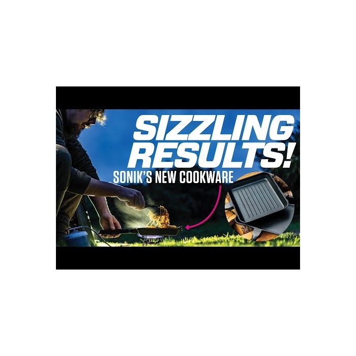 The SONIK SIZZLA range of cookware has been designed with ultimate adaptability, convenience and versatility in mind. The SIZZLA multi-pan is the perfect size for a wide variety of meals with its 30mm depth and wide rectangular profile which provides space to cook a whole host of different ingredients. It is also ultimately portable with a removable handle that features our super tough and secure T-Lock attachment system, which is low profile and allows the pan to be easily stored in even the most compact cook kit. Last but not least, the SONIK SIZZLA comes with a set of extremely useful muti-purpose tongs that are easy to store on the handle whilst cooking and can be separated into two independent cooking utensils when needed.
