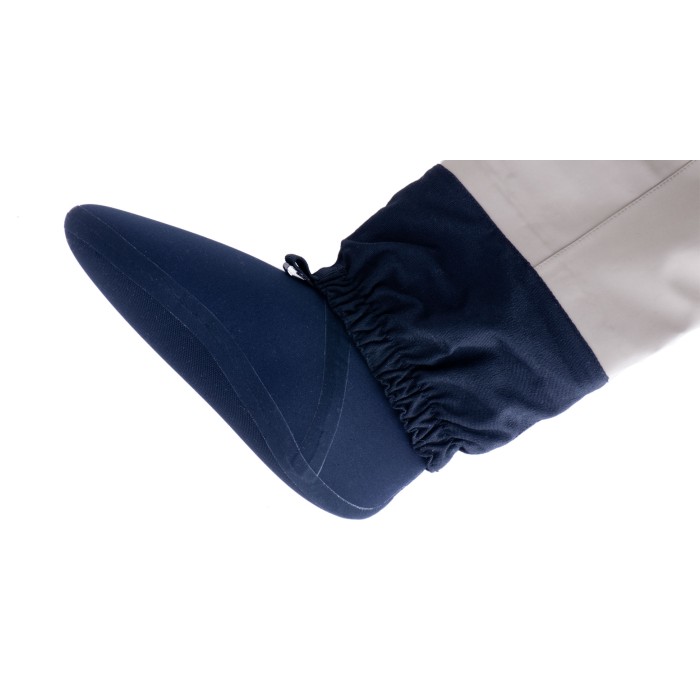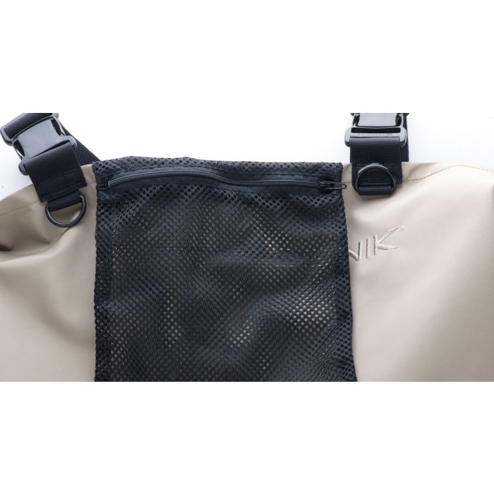 A 3.5mm neoprene stocking foot is taped inside and out and is designed to have a close fit for comfort inside the boots. An internal zippered mesh pocket is provided on the inside front of the waders, together with two D-rings on the front for attachment of chest pack.