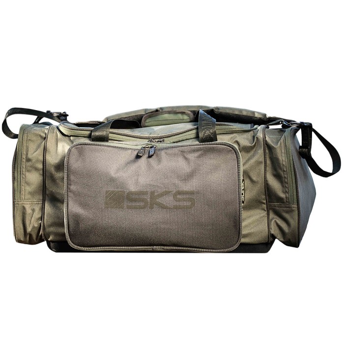 Available in 2 sizes, the SKS Carryalls are one the necessities of any angler. With a lightweight waterproof moulded base to keep your gear clean and dry, 3 external pockets and 1 large internal pocket, there is ample amount of room to carry all of todays carp anglers weaponry. A padded shoulder strap means it easy and comfortable to carry on the shoulder, or use the grab handle to lift the carryall on and off your barrow.