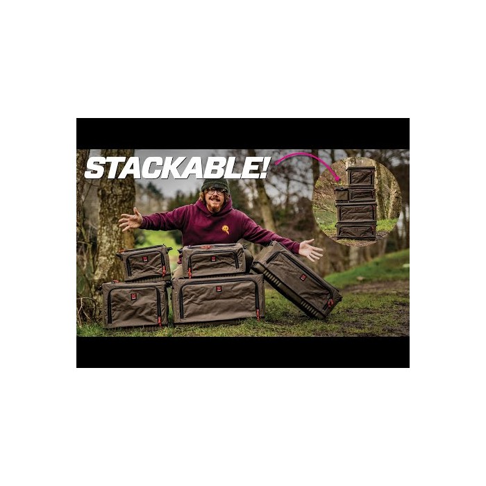 The SONIK STORZ luggage brings a new concept to modular fishing kit storage. All of the STORZ range are designed to be modular and stackable but also rugged and built to last. They feature our new RIGIDZ internal steel frame that provides support so that these bags can stack on top of each other to create many different storage layout options. The range is split into two height and three length options. All STORZ LOW products have a height of 22cm which is perfect for under bedchair storage. Heavy duty waterproof EVA bases and side grab handles make these bags ideal for sliding underneath your bedchair. It also makes them perfect for middle or top tier options when you want to stack your STORZ system. The other STORZ models all have a height of 32cm; these are great for general all-round storage options and as base units for when you want a stacked storage unit. Lengths are split into three options of 20, 40 and 60cm which allow you to create all sorts of modular layout options. To complete the range are two tabletop products which are compatible with the 40 and 60cm sizes respectively. These are great for turning your STORZ system into a full bivvy table unit when required.