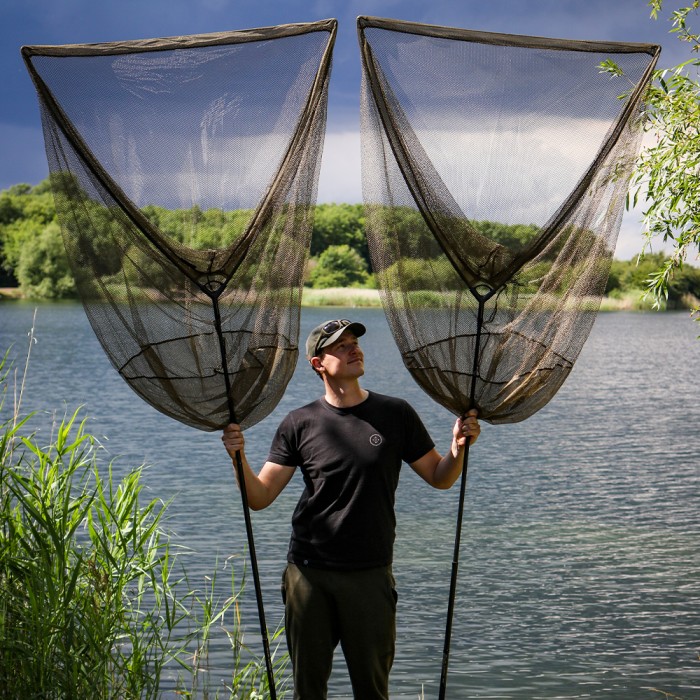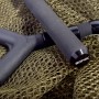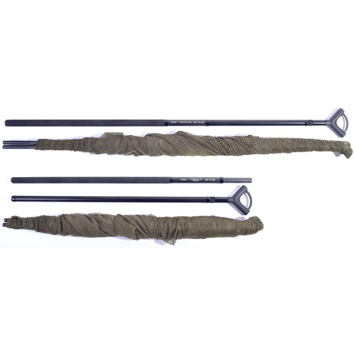 The XTRACTOR+ RECON landing net has been designed to complement our shorter retractable butt carp rods with a transport length of only 30 inches, whilst still being a full 42 size landing net. This has been achieved by both the net arms and handle having telescopic construction. The redesigned and updated handle is super stiff and can now be used at three different lengths, 75cm 145cm and 195cm. At full length there is also a spiked point for fish retention if needed. All fittings are both glued and pinned for ultimate reliability. The super strong forged aluminium spreader block has a skeleton design for easy arm insertion and stainless steel 3/8 stud. The reinforced olive green 42 mesh has free-flowing hex mesh on the sides and a super soft base mesh. A generous depth of 95cm strikes a perfect balance for temporarily holding fish and moving quickly through the water.