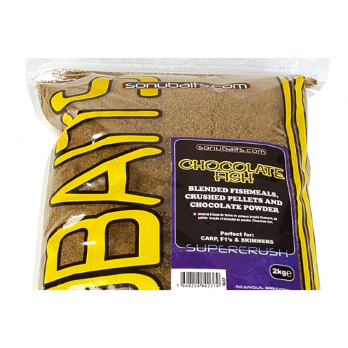 Chocolate Fish is a new SonuBaits groundbait consisting of blended fishmeals, crushed pellets and chocolate powder with added fish attractors. It is a modern fishmeal based groundbait with added sweetness to attract larger fish.