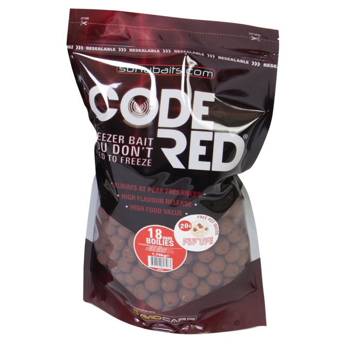 Code Red is a new concept in boilies, lead by the demand for baits that work straight away we have developed a fresh bait which stays fresh meaning that it its attractants begin to release as soon as they are in the water and the ingredients in the boilie mean that it creates food signals until it is eaten or breaks down.