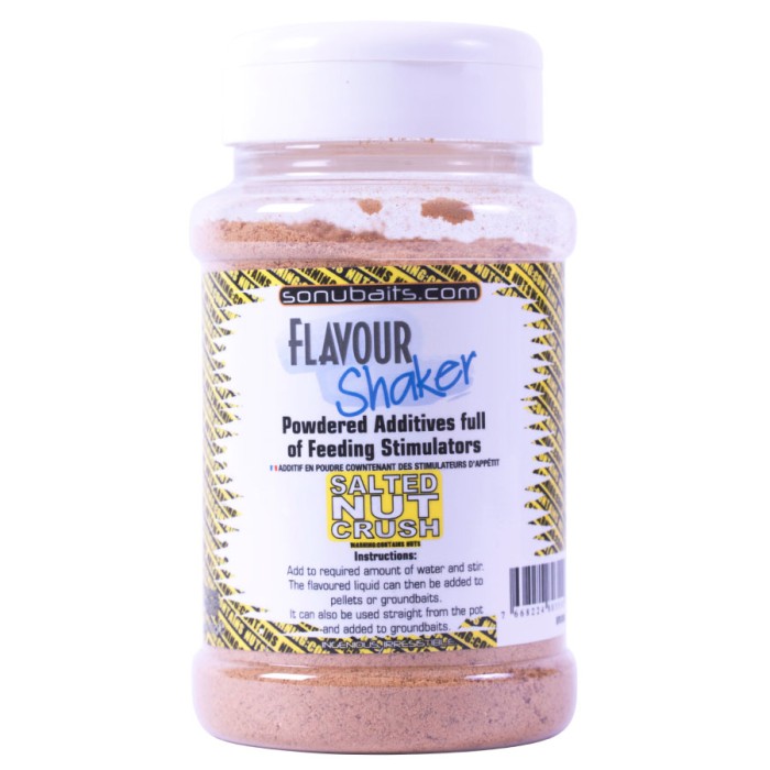Flavour Shakers are some of the best flavours and ingredients available including: F1 , Tiger Fish, Salted Nut Crush, Spicy Sausage, Super Fish, Super Krill, Super Octopus, Super Seaweed