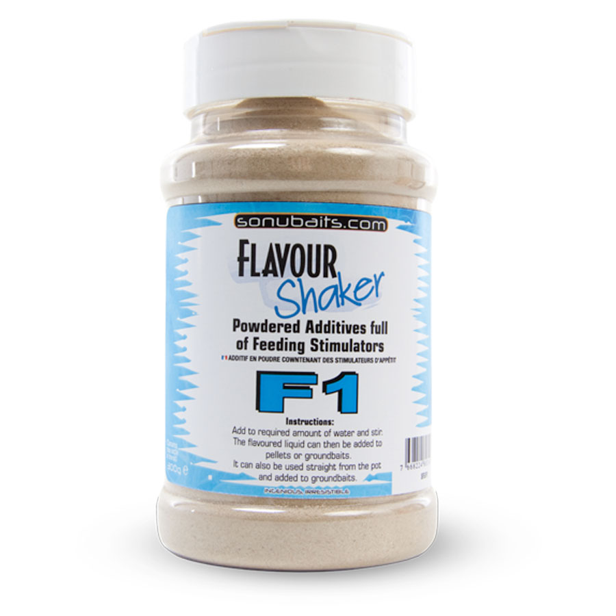 Shaker number one is the F1 Flavour Shaker. Already revolutionising commercial carp fisheries, this is the perfect additive to use when you’re targeting F1s. Composed of an innovative blend of sweet attractive mixes, fishmeals, and crush pellets this is bait that offers a prolonged holding power. Easy to mix, when you add water to this it creates an inactive bait which breaks down rapidly around the hook – perfect for method feeder fishing. This bait performs at its best when it is mixed the night before your session, but if you don’t get the chance then you needn’t worry as it will work fantastically mixed on the bank too.
