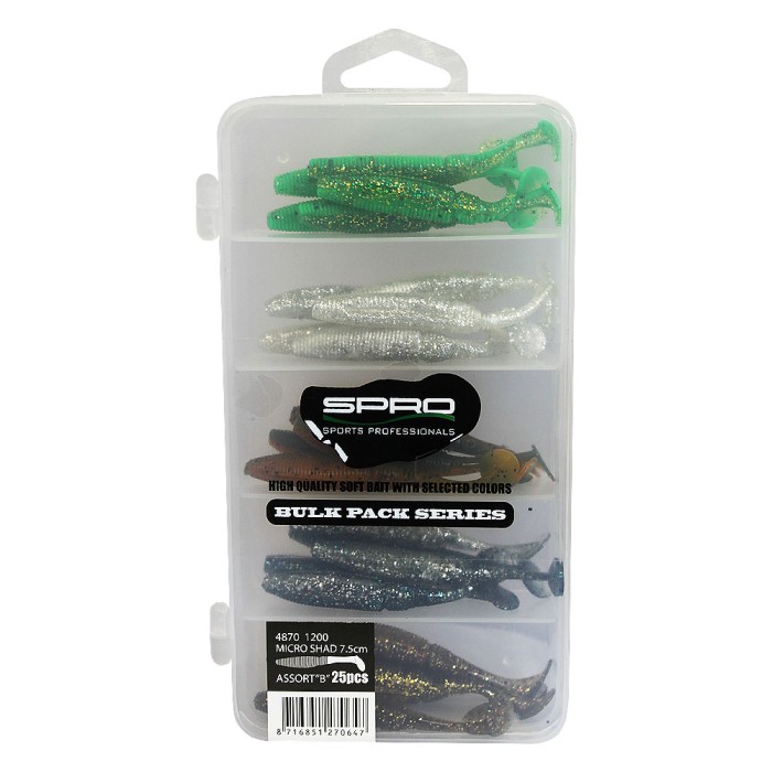 These are high quality lures with just the right action you need for Dropshot fishing. Available in 10 different colours, mixed over 2 assortment boxes each holding 5 colours and 6 pieces per colour.