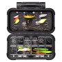 A great new stocker box with one the one side EVA foam with slits to hold stinger hooks but also micro lures, spoons and jig heads. The other side features 12 easy accessible compartments for small accessories of all sorts. Dimensions: 160mm x 95mm x 47mm.