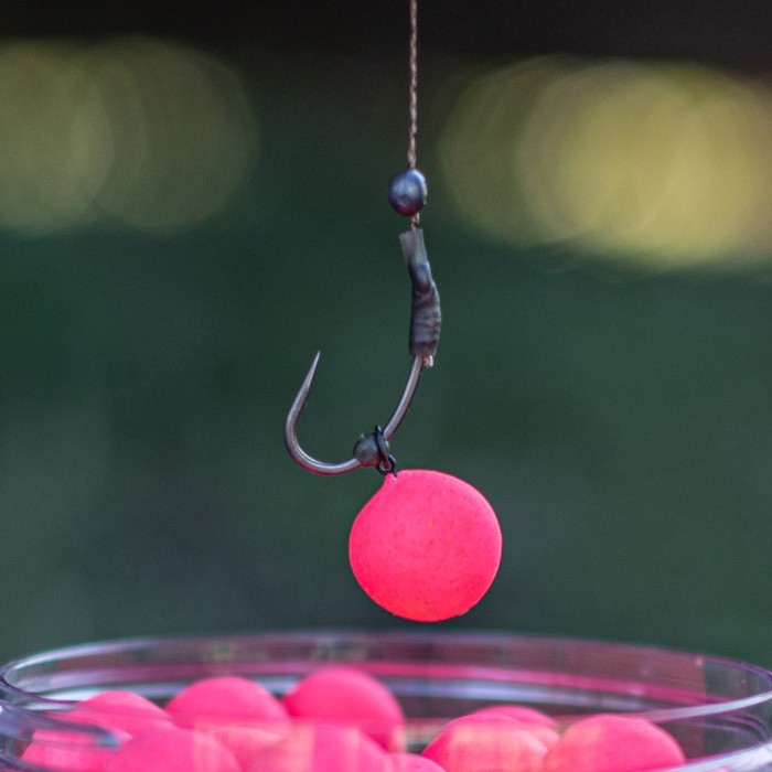 The bright orange pop ups are Peach & Pepper flavoured which offers an old-school classic combination of Peach Melba flavour and pure Black Pepper Essential Oil. Peach and Pepper hookbaits really have a knack of singling out the bigger fish.