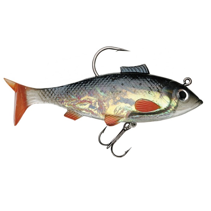 The WildEye Live series is the most realistic series of baits available. Internally weighted body creates an incredibly life-like swimming. The realistic colour patterns and shape of the bait is backed up with 3-D holographic WildEye, holographic swimmin flash foil and a tough yet soft outer body. This swimbait has a roach body and colour pattern and a back VMC needle point hook and a treble belly hook.
