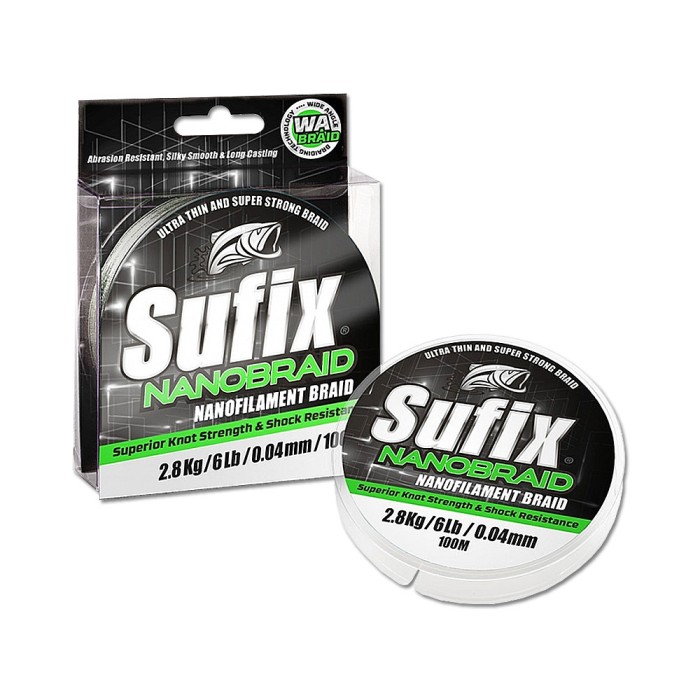 Sufix Nano Braid is a strong yet thin nanofilament braid. Sufix Nano Braid is built with a Wide Angle Braiding Technology that creates higher tension on the braiding process, resulting in a tight weave and super strong, silky smooth line. The densely braided Dyneema fibers and a high pitch-count up to twice as high as on most braided lines gives consistent quality, uniform diameter and increased abrasion resistance, improving the lines performance. Sufix Nano Braid is up to three times stronger than other lines in the category and also features superior knot and shock strength unmatched by any other ultra-thin line. The silky soft line is extremely sensitive and runs quietly through the guides.