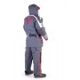 Jacket: Polyester and Tricot body lining, polar fleece lined collar and hood, reinforced elbows, 2 outer pockets, 2 inner pockets, polar fleece handwarmers, 2 way YKK main zipper, webbing belt.