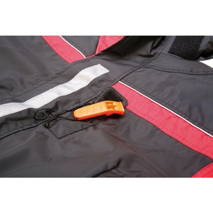 The outer shell is made from tough 210D Nylon Oxford, and the inner suit is manufactured from durable polyester lining. With waterproof seam sealed protection, this suit has stamina that won’t let you down. Safety features include a warning whistle, and the suit has reflective tape in prime locations. With a polar fleece lined collar and hand warmers, this suit is dedicated to keeping you warm on the water. Reinforcement on the knees, elbows, and seat ensures that this flotation suit won’t wear quickly in the most common, and often overlooked, places.