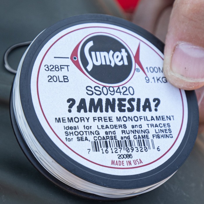 Amnesia has earned the worldwide consensus that it is the finest shooting line available for backing shooting tapers. In an exclusive process developed by Sunset, solid filament Amnesia is produced without memory, a filament's tendency to return to its original position, that makes monofilament less than an ideal shooting line. Amnesia strips off the reel at the start of the day like any monofilament, in tight coils. In preparation for use, Amnesia is stretched it gives about 10 percent. For the rest of the day, Amnesia lays in loose, tangle free loops. When a head is released, Amnesia shoots up through the guides freely, without the knotting or the set of monofilament coils to slow it passage. Amnesia is round, superior to flattened or oval monofilament because it cuts through the water. Flattened monofilament planes in the water, developing slack and retarding the sinking of the head. Memory free Amnesia in a range of 15 lb to 40 lb covers the gamut of fly fishing potential. Each test offers the superb shooting and fishing qualities that make Amnesia the best shooting line available.
