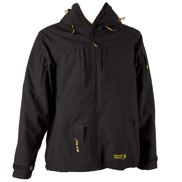 Tactic Carp Black Softshell Parka and Drill Bag,