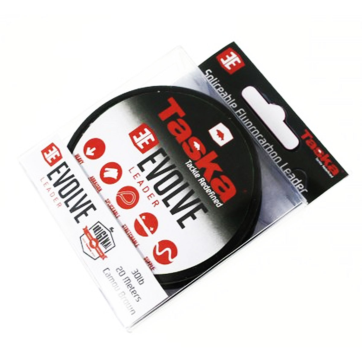 The Taska Evolve is a woven fluorocarbon leader material. The Evolve leader has been through a revolutionary manufacturing process of braiding together singular strands of fluorocarbon, making it easy to splice and giving it some truly unique properties. The process has resulted in it being incredibly supple, heavy, and highly abrasion resistant. Unlike any other braided leader material, the Evolve leader can stretch up to 25% - making it very forgiving whilst playing fish under the rod tip and reducing hook pulls.