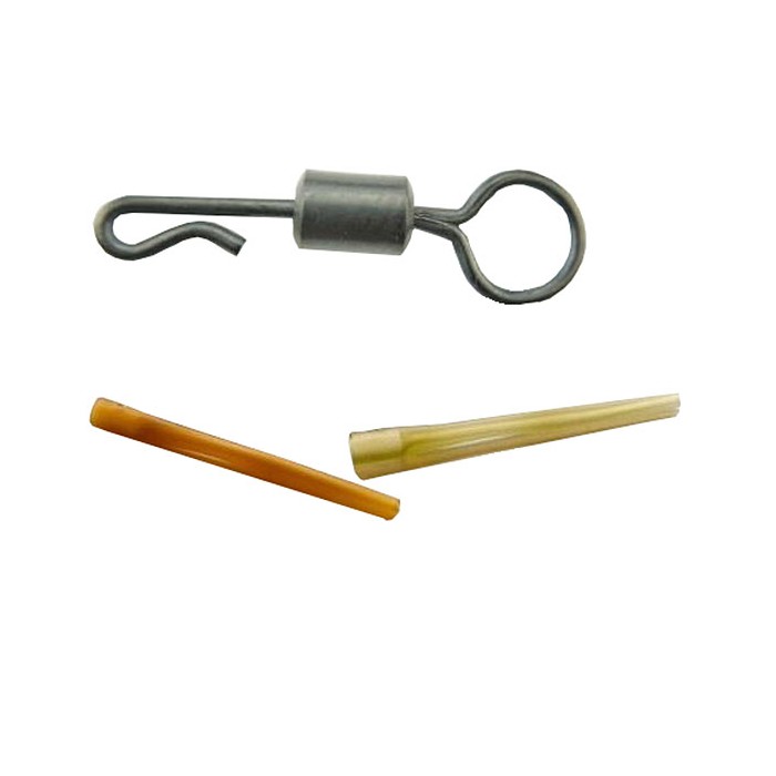 These Top-Of-The-Range quality swivels and sleeves are perfect for many precision carp rig situations requiring a quick and fast changeover. By removing the sleeve they allow fast detachment and quick fixing of various rig choices, such as PVA sticks or bags, helicopter set-up, lead links etc. The rolling barrel has a strong, easy to use clip with a large rotating eye with a non-spook coloured anti-tangle sleeve. The swivels come in a subtle non-reflective matt black finish.