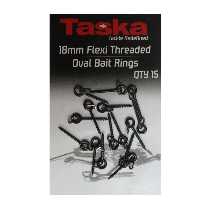 Taska Threaded Flexi Bait Oval Rings are designed to make it easier to mount a bait instead of having to tie them on. They also make sure the bait runs freely on the hook to give a perfect pop up presentation. Made from stainless steel and coated black to cut down on glare underwater.